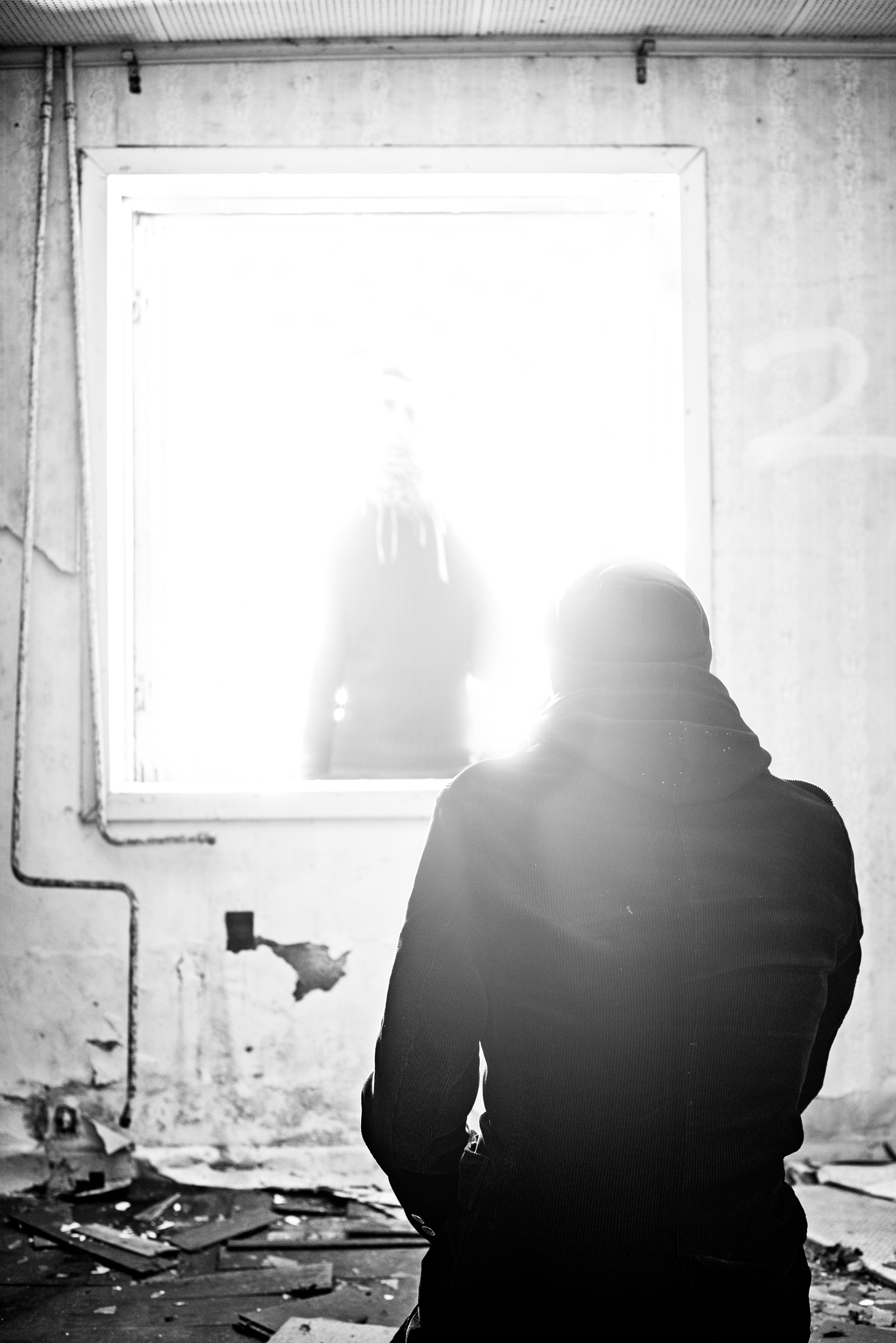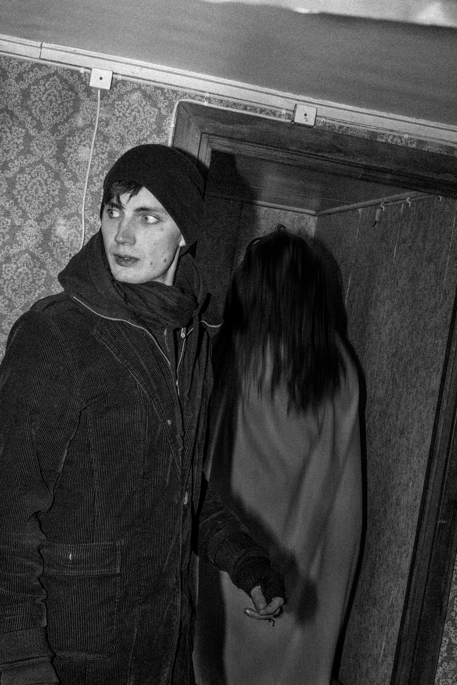 This session is inspired by the fact that we could visit a house that has been abandoned after the husband murdered his wife with an axe. Fjalar is the ghost and Robin Ahlqvist acts as the haunted.